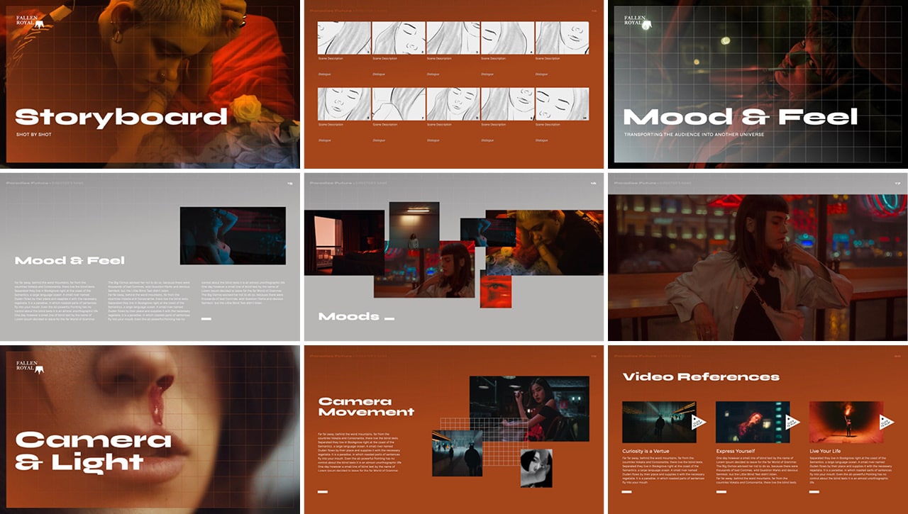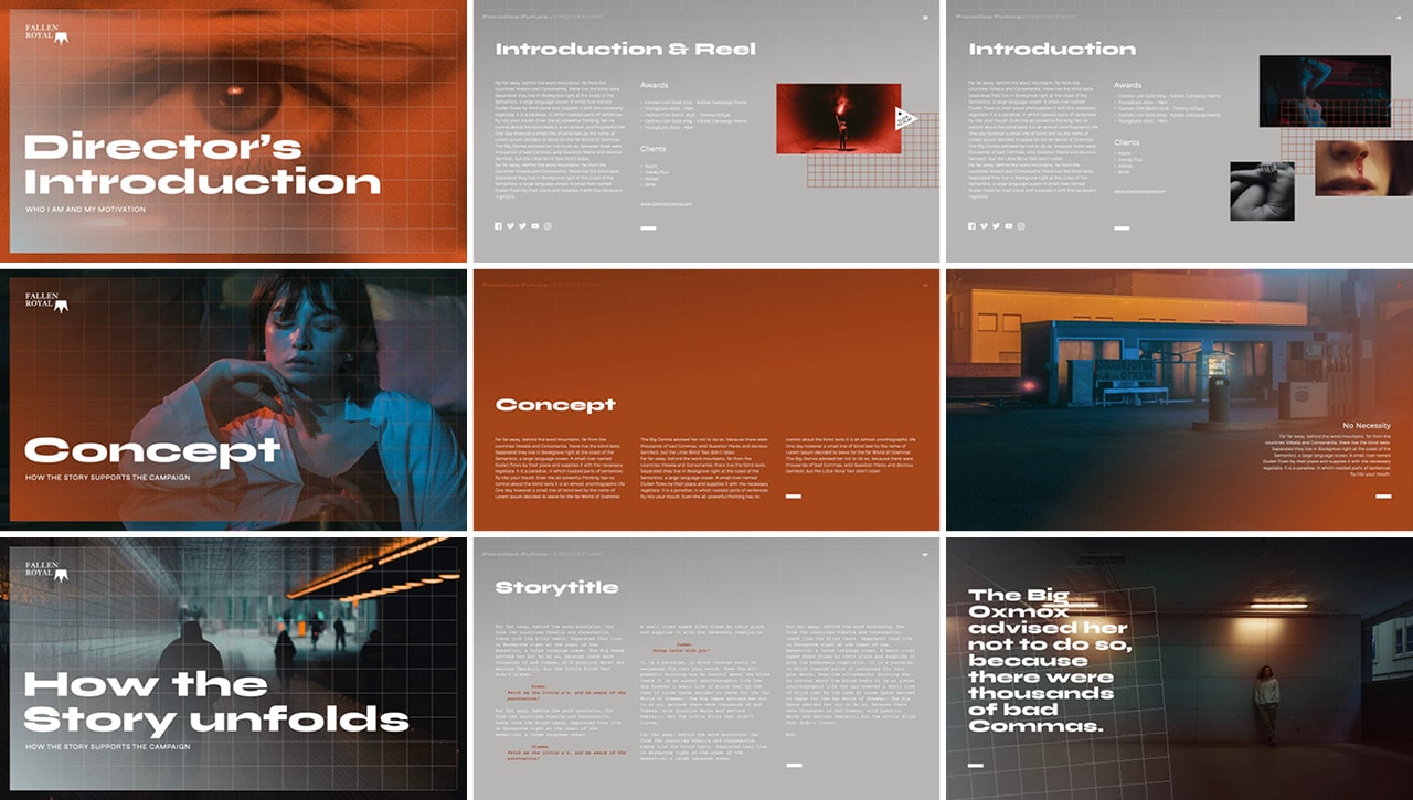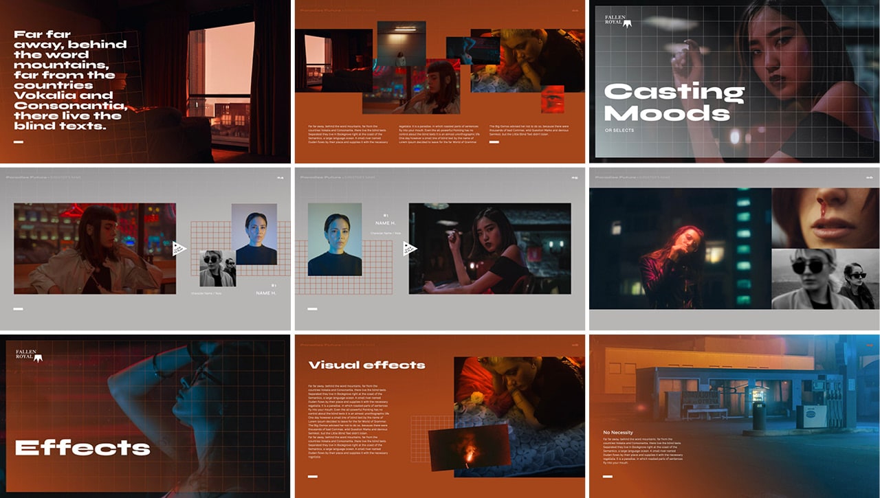 This rather futuristic template appeals with an aesthetic reminding of blade runner. It can be used for music videos and commercials. The Design is especially fitting for technic and fashion commercials .